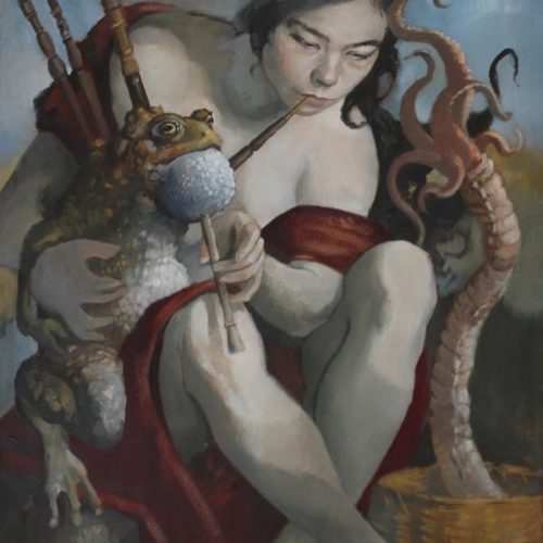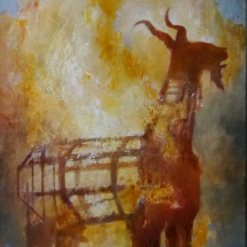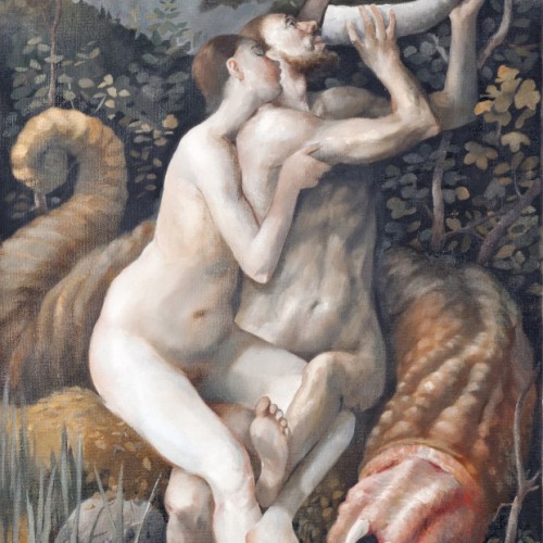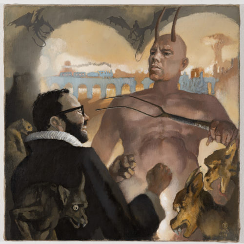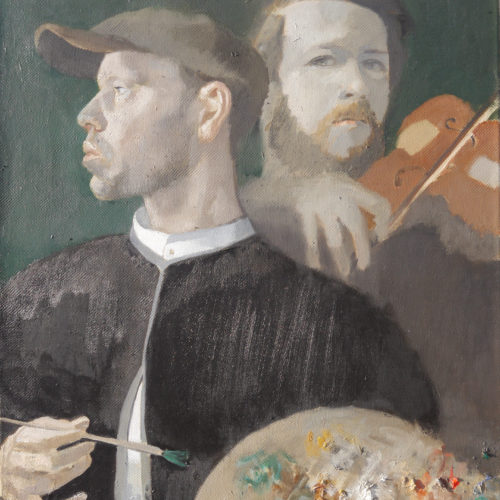 Self portrait with Böcklin playing the fiddle (2020)